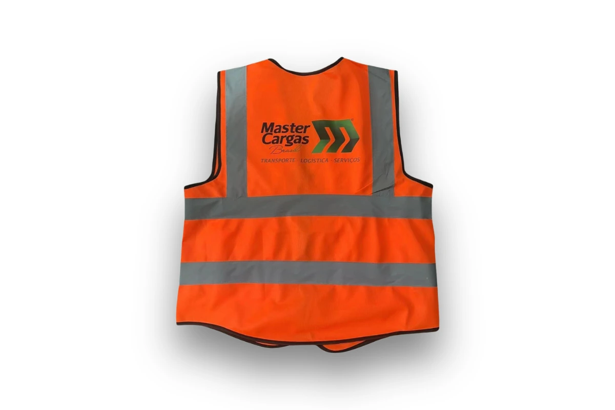 tecido 100% poliéster fluorescente, garantindo resistência e longa durabilidade. As faixas refletivas são estrategicamente posicionadas para maximizar a visibilidade, tornando o usuário visível em 360°, tanto durante o dia quanto à noite. O fechamento frontal em zíper oferece praticidade e um ajuste seguro.