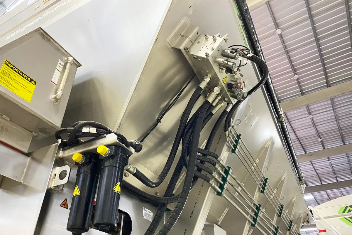 - Acionamento: Kit hidráulico independente com bomba e reservatório próprios, que utiliza apenas a tomada de força do trator para funcionar, dispensando o sistema hidráulico do trator.