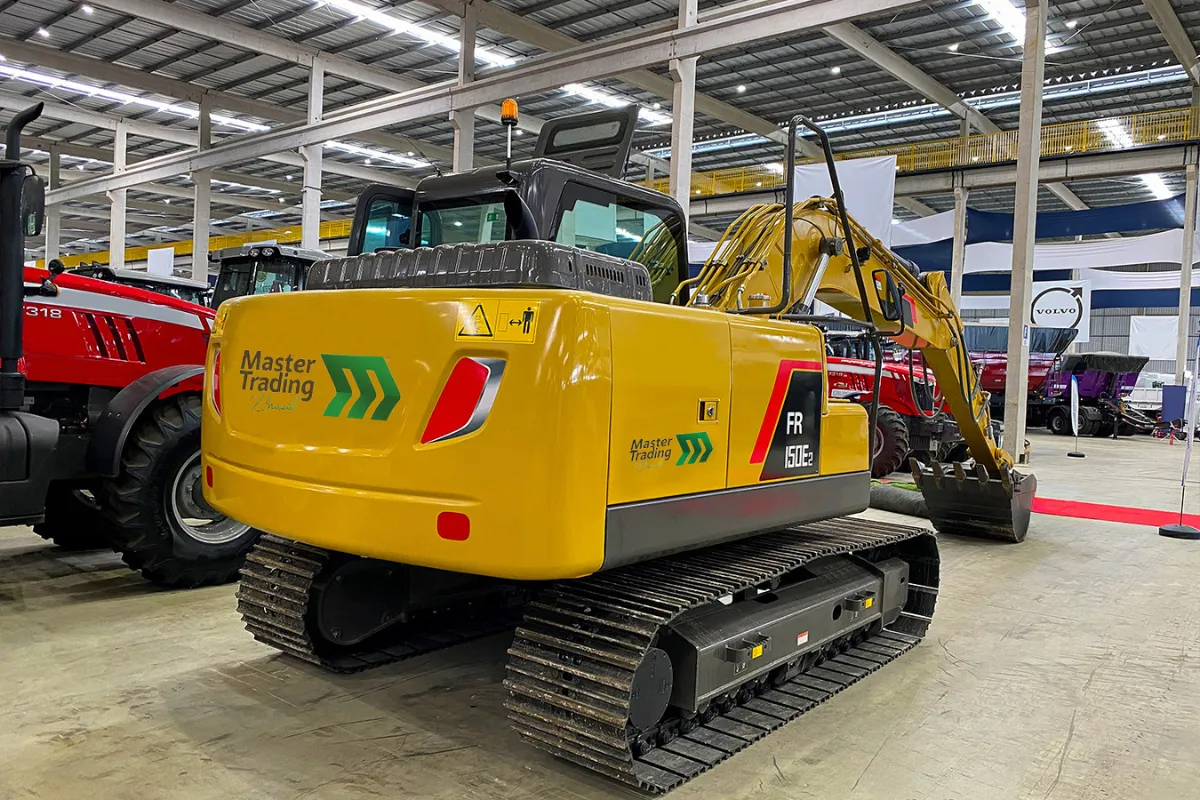 A escavadeira hidráulica Lovol FR150E2 tem potência nominal de 86 kW (115 HP) a 2200 rpm, peso operacional de 13.850 kg e capacidade de caçamba de 0,58 m³. Seu sistema hidráulico aprimorado permite um controle preciso e suave da máquina, otimizando o desempenho da operação.